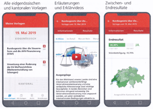 Schnelle, einfache und zuver-lässige App von Bund und Kantonen zu den Abstimmungen in der Schweiz. Antworten auf die Fragen "Worum geht es und wie wurde abgestimmt?"